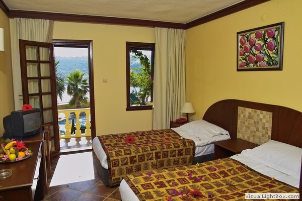 Tüm odalarda: Uydu yayınlı tv, mini buzdolabı, telefon, emanet kasası, fön ve split klima mevcut olup, Orman veya Deniz Manzaralı ve çoğunlukla balkonludur.